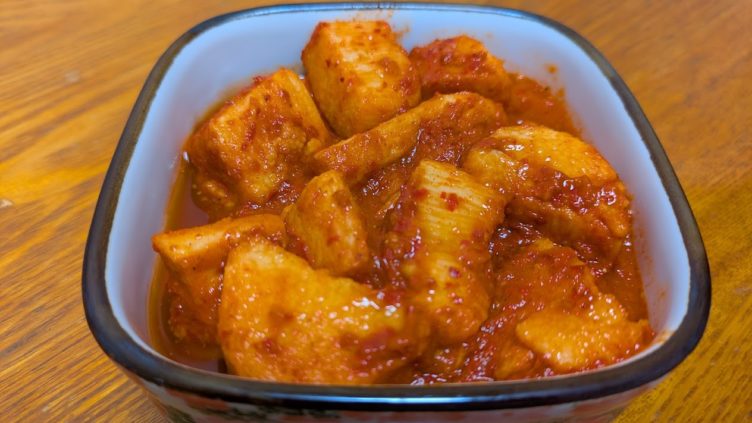 先日、日常の食料品を買いに近所のスーパーマーケットに行ったのですが、キムチの特設ワゴンが出来ていて、おいしそうだなあと眺めていたら山芋のキムチがパッと目に入りました。