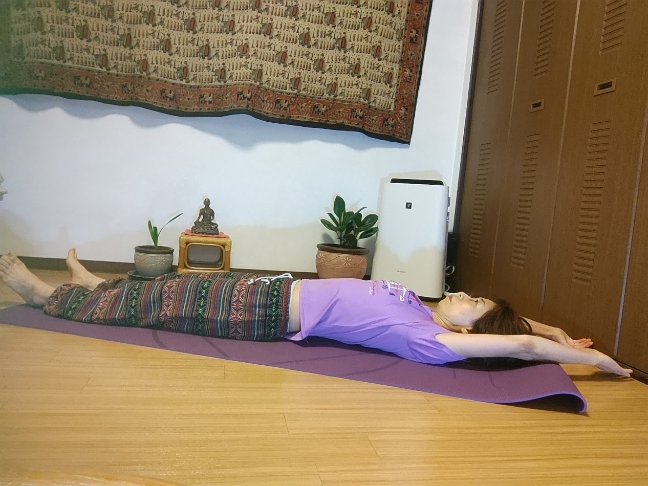 「床に大の字になって寝転んで