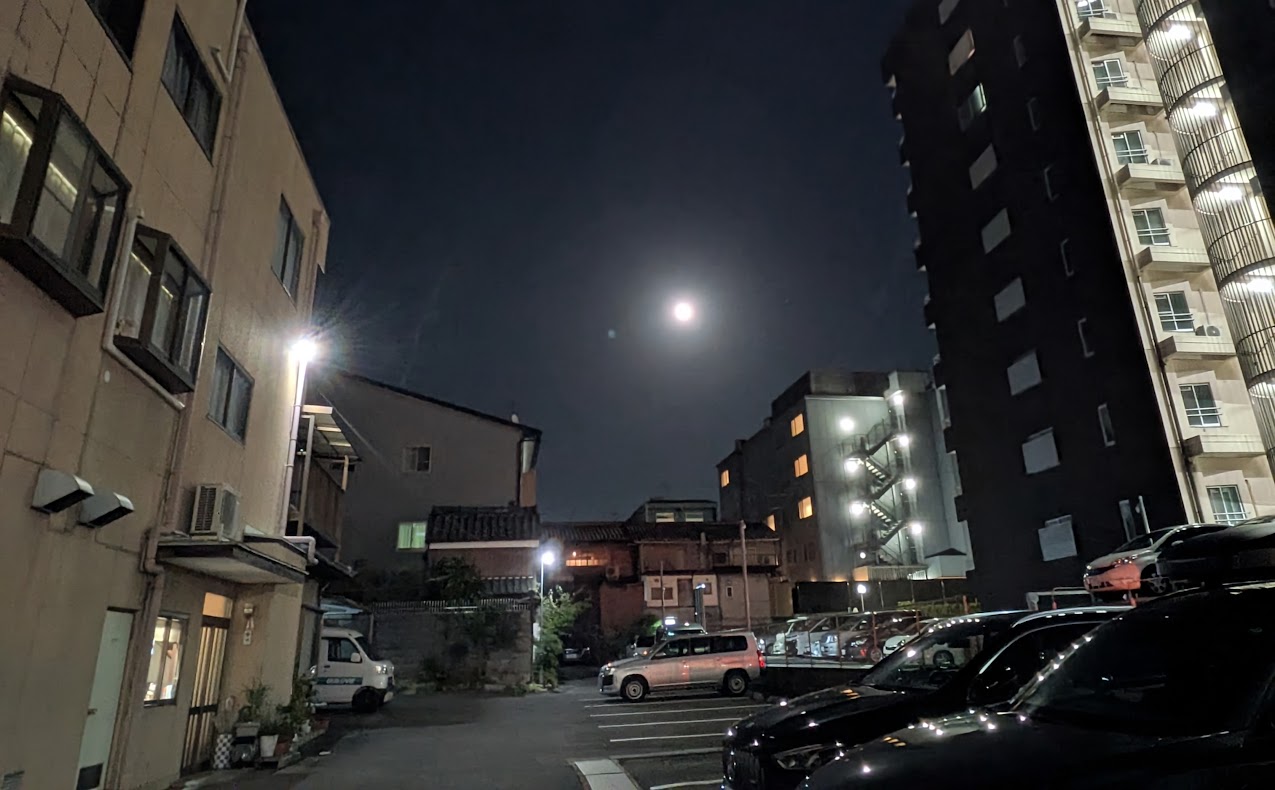 イマドキのビルの谷間から見えるお月さん眺めて、